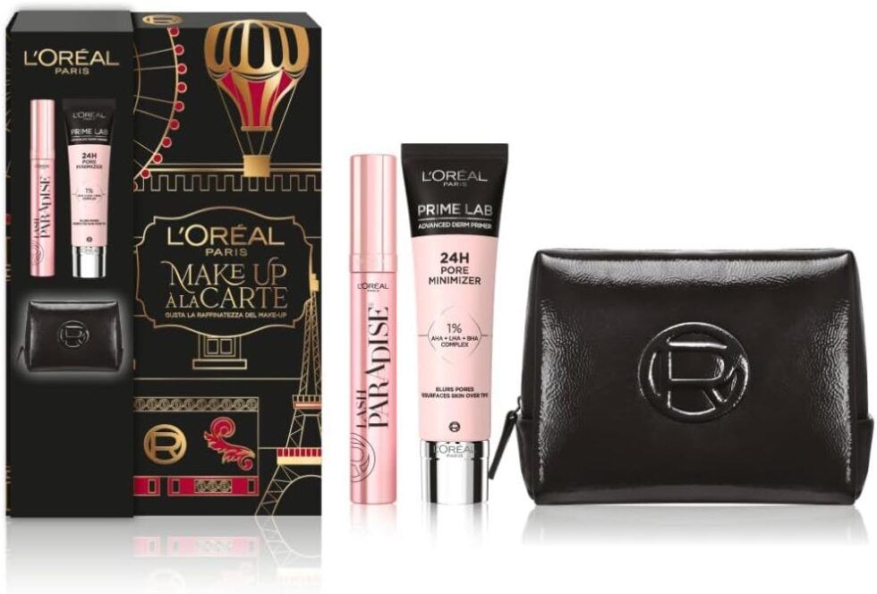 Regala eleganza e qualità con questo set idea regalo con primer e mascara volumizzante! Una maxi pochette in vernice nera che contiene un primer Lab 24H Pore Minimizer, che minimizza istantaneamente i pori e prolunga la durata del trucco e il mascara Lash Paradise, per un volume intenso e immediato e ciglia morbide e nutrite. Il regalo perfetto per ogni make up addicted .
