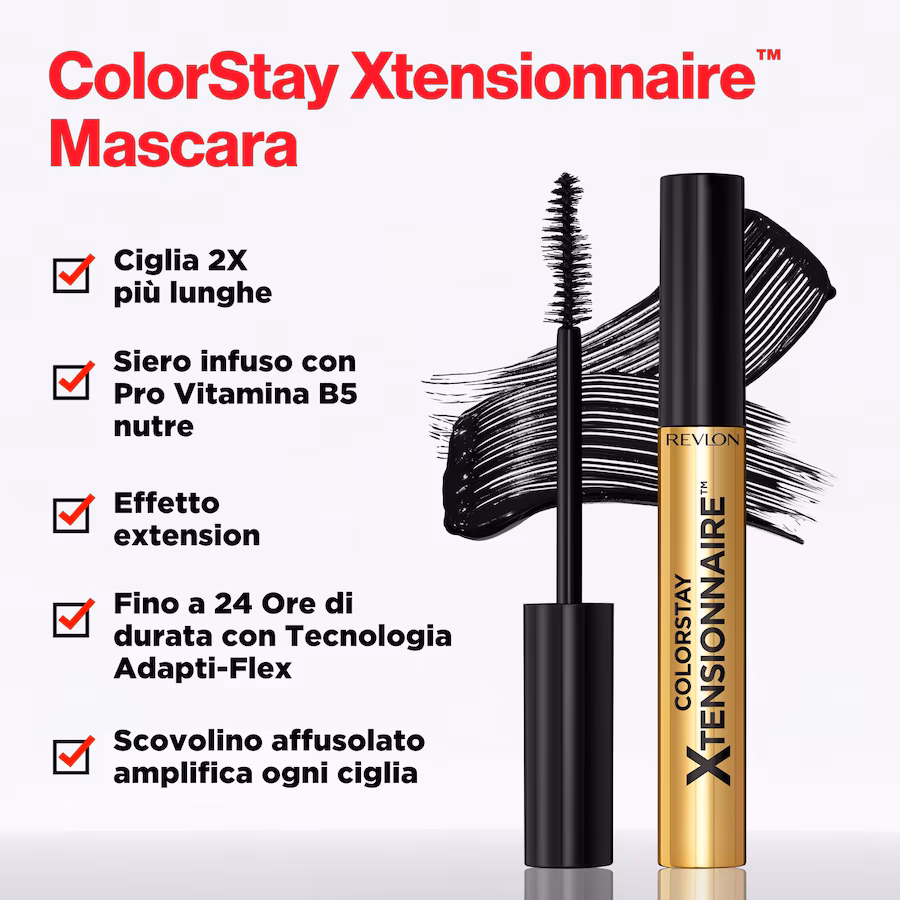 DESCRIZIONE: Revlon Colorstay Xtensionnaire Mascara Allungante estende le ciglia al massimo. Le Fibre Polimeriche Flessibili e…